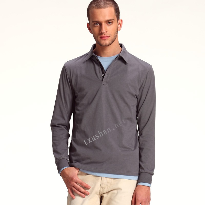 長(zhǎng)袖翻領(lǐng)T恤衫,采購(gòu)21‘/32'S純棉或者CVC材質(zhì)。