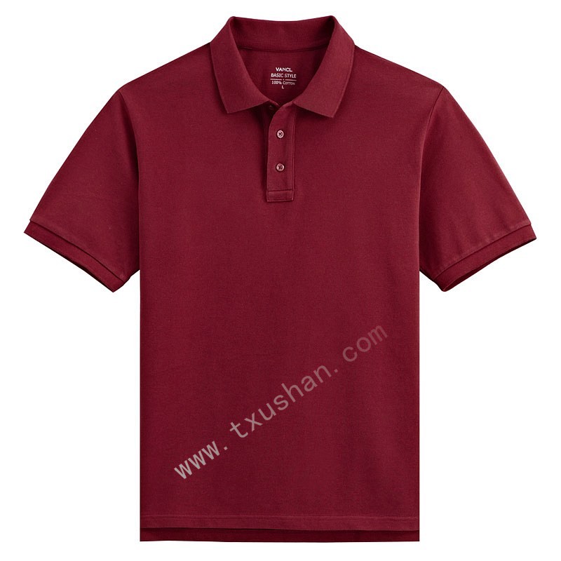 深紅色翻領T恤衫